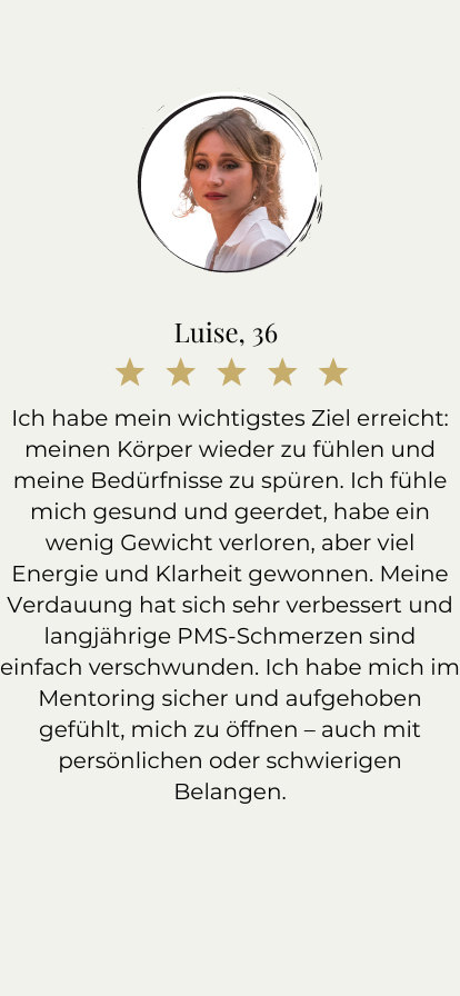 Sie haben ihren Körper mit den richtigen Nährstoffen in der richtigen Menge versorgt, sodass er genug Energie für Hormonsystem, Immunsystem, Nervensystem und Organsystem hatte und sie ihre Symptome losgeworden.